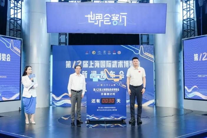 上海市体育局副局长罗文桦,虹口区委常委、统战部部长郑宏共同启动倒计时装置,迎来本届武博会开幕倒计时三十天