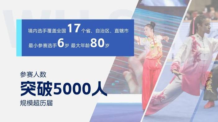 选手年龄跨度从6岁至80岁,充分体现武术运动“全龄参与、终身习练”的魅力,预计最终参赛人数将突破5000人,规模超历届。