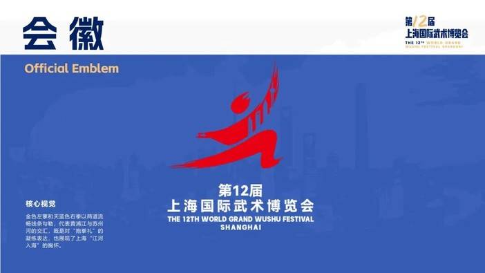 发布会上,本届武博会的会徽、核心视觉、奖牌和吉祥物也正式揭晓。会徽以动态图形展现武术的力量感,融合上海国际化都市气质,传递“海纳百川、追求卓越”的城市精神。