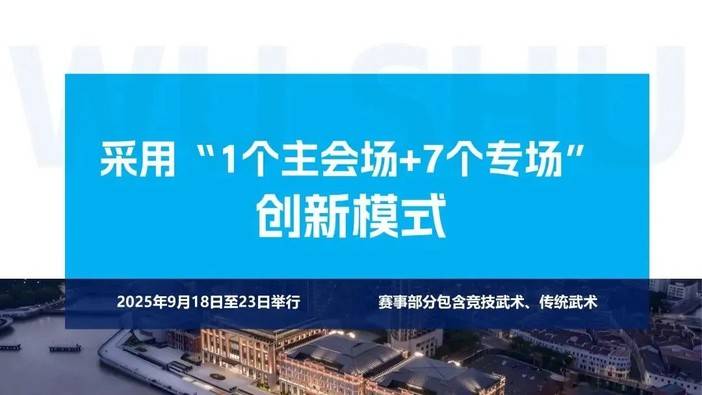 七大专场覆盖各年龄层与各武术项目,中老年太极拳交流活动专场展现传统养生智慧,青少年武术专场彰显新生代风采,其他专场汇聚各类武艺精髓。赛会场地辐射虹口、黄浦、长宁、杨浦、松江等区,还将延伸至长三角,力争实现“全域联动、全时精彩”。